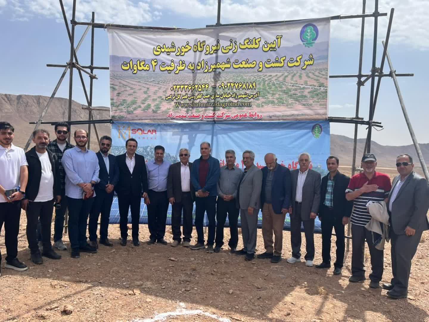 آیین کلنگ زنی احداث فاز اول نیروگاه خورشیدی با حضور مهندس خداداد فرماندار شهرستان مهدیشهر ، مهندس صادقیان بخشدار شهمیرزاد ، مهندس علی اصغر پاکدامن کارشناس توانیر در بخش نیروگاهی ، مهندس حیدری مجری طرح و جمعی از مسیولین دستگاههای اجرایی و شورای شهر در زمینی به مساحت شش هکتار و با سرمایه ای بالغ بر یکصدوبیست میلیارد تومان وقدرت تولید برق به میزان چهارمگاوات در شرکت کشت و صنعت شهمیرزاد برگزار شد . این طرح در مدت دوماه به بهره برداری خواهد رسید و به شبکه برق سراسری متصل خواهد شد